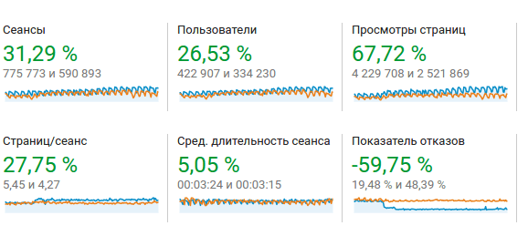 Збільшилася кількість переглянутих сторінок, зменшилися показники відмов і покращилися інші внутрішні мірки компанії. Це результат спільної роботи з клієнтом щодо поліпшення комерційних і поведінкових факторів на сайті.